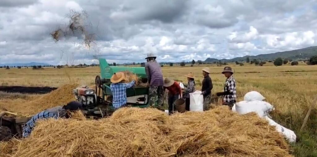 အာဏာသိမ်း စစ်တပ်ရဲ့ စစ်ကြောင်းနဲ့တွေ့ရင် စပါးရိတ်သိမ်းနေတဲ့ ပြည်သူတွေကို အကြောင်းမဲ့ ဖမ်းဆီးခံရလို့ ဒေသခံတွေ စိုးရိမ်ထိတ်လန့်စွာနဲ့ ကောက်ရိတ်နေကြရတာပါ။