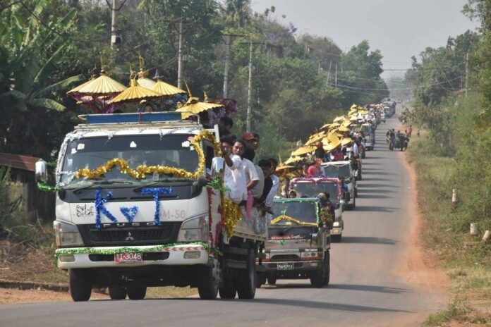 ကရင်နီပြည် ဒီးမော့ဆိုမြို့နယ် အနောက်ဖက်ခြမ်း ကျေးရွာတစ်ခုရဲ့ ဘုန်းကြီးကျောင်းဝန်းထဲမှာ စုပေါင်းအလှူတော်မင်္ဂလာပြုလုပ်နေကြပါတယ်။ မဏ္ဍပ် ထဲမှာတော့ သင်္ကန်းဝတ်မယ့် ရှင်လောင်းလေးတွေ၊ နားသ မင်္ဂလာခံယူမယ့် သမီးငယ်လေးတွေနဲ့ အတူ အလှူ့ဒကာ၊ ဒကာမတွေ၊ ရှင်ပြုပွဲကိုလာရောက်ကြတဲ့ ဧည့်ပရိတ်သတ်တွေနဲ လူတွေကြိတ်ကြိတ်တိုး စည်ကားနေပါတယ်။