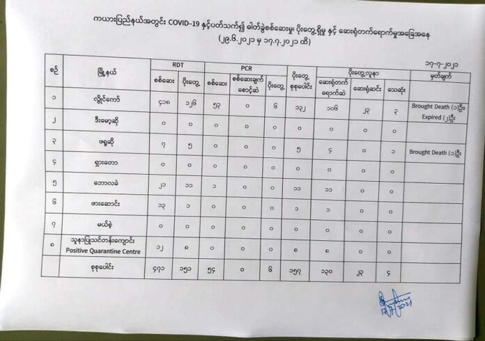 ကိုဗစ်ပိုးဖြင့် သေဆုံးသူ လွိုင်ကော်မြို့မှ ၃ဦးနဲ့ ဖရူဆိုမြို့မှတစ်ဦး စုစုပေါင်း ၄ ဦး ရှိနေပြီး