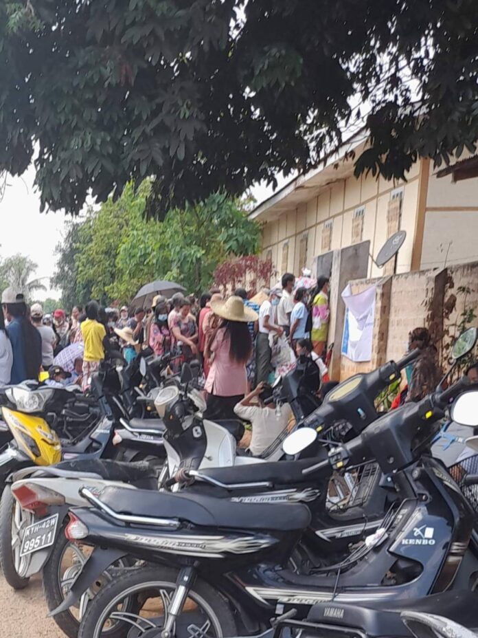 ” ပစ္စည်းသွားထုတ်ရင် တန်းစီရတယ်။ တန်းစီးပြီးတော့ အိမ်ထောင်စုစာရင်း ပြပြီးတော့ ထုတ်ရတာပေါ့နော။ ကျနော်ကိုယ်တိုင် အထဲထိ မရောက်သေးဘူး။ ထုတ်လည်းမထုတ်ရသေးဘူး။ လူတအားများလို့လေ။ ” လို့ ဒေသခံ တစ်ဦးက ပြောပါတယ်။