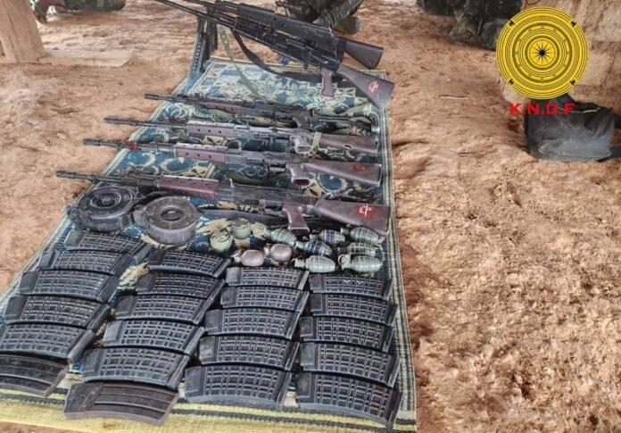 ဒါ့အပြင် စစ်ကောင်စီတပ်ထံကနေ MA-1 သေနတ် (၃) လက် ၊ MA-2 သေနတ် (၂)လက် ၊ MA-3 သေနတ် (၁)လက်၊ ခဲယမ်းမီးကျောက်များ ၊ အသုံးဆောင်များအား သိမ်းဆည်ရရှိခဲ့တယ်လို့ KNDF က ထုတ်ပြန်ပါတယ်။
