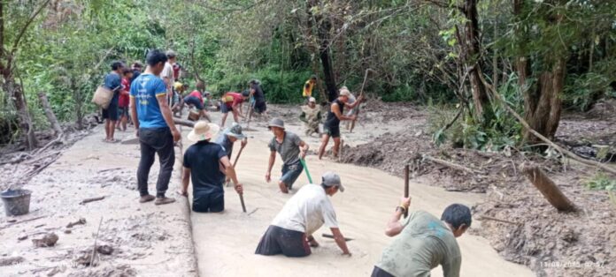 ဖယ်ခုံမှာ မိုးအဆက်မပြတ်ရွာပြီး တောင်ကမ်းပါးပြို၊ ပျက်စီးသွားတဲ့ လမ်းတွေကို လူထုတွေ ကိုယ်ထူကိုယ်ထ ပြန်လည်ပြုပြင်နေကြ