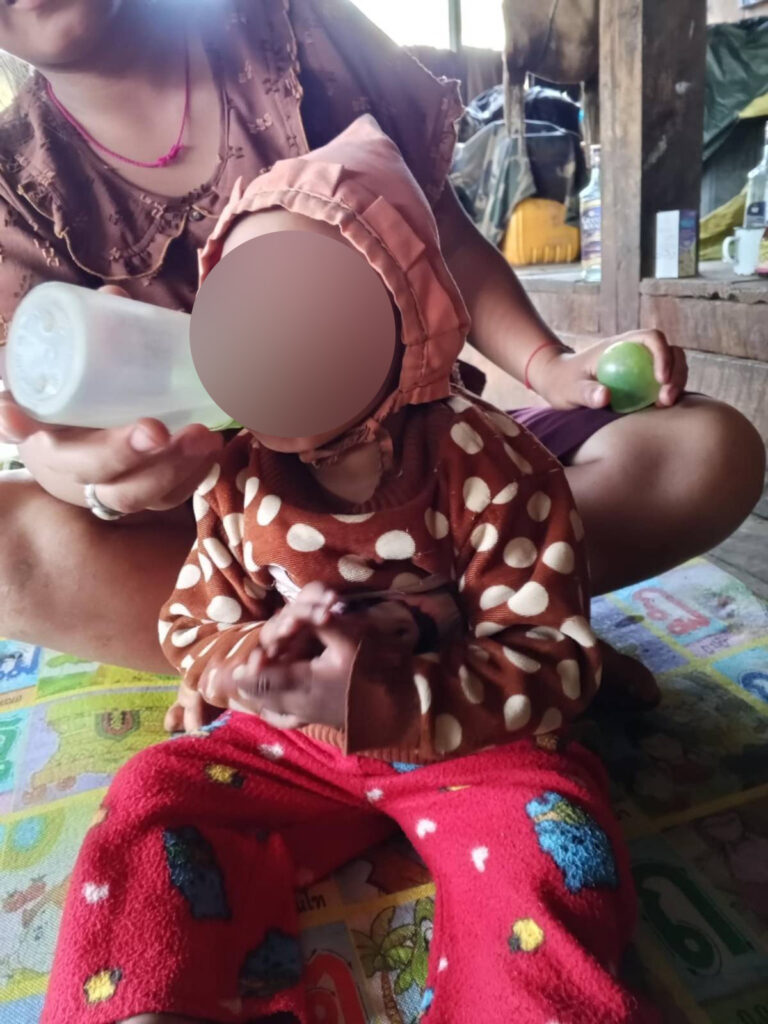 အဆိုပါကလေးငယ်ရဲ့ မိဘတွေဟာ စစ်ရှောင်နေကြရတာဖြစ်ပြီး အသက် ၁နှစ် နဲ့ ၈ လရှိပြီဖြစ်တဲ့ အဆိုပါ ကလေးအတွက် အဟာရဖြည့်စွက်စာအတွက်လည်း အကူအညီလိုအပ်ကြောင်း ကလေးနဲ့ နီးစပ်သူ အမျိုးသမီး တစ်ဦးက အခုလိုဆက်ပြောပါတယ်။