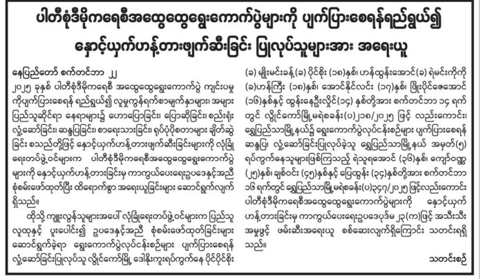 ၂၀၂၅ခုနှစ် ပါတီစုံရွေးကောက်ပွဲ ကျင်းပမှုကို ပျက်ပြားစေဖို့ ရည်ရွယ်ချက်နဲ့ လူမှုကွန်ရက်စာမျက်နှာ၊ အများပြည်သူဆိုင်ရာနေရာမှာ ဟောပြောတာ၊ စည်းရုံးလှုံ့ဆော်တာ၊ ဆန္ဒပြတာ ၊ စာရေးသားတာ၊ ရုပ်ပုံပိုစတာချိတ်ဆွဲတာ စတဲ့လုပ်ဆောင်ချက် တခုခုကို ပြုလုပ်ပါက ရွေးကောက်ပွဲကို နှောင့်ယှက်တာလို့ စစ်ကော်မရှင်က ပြောဆိုထားပါတယ်။