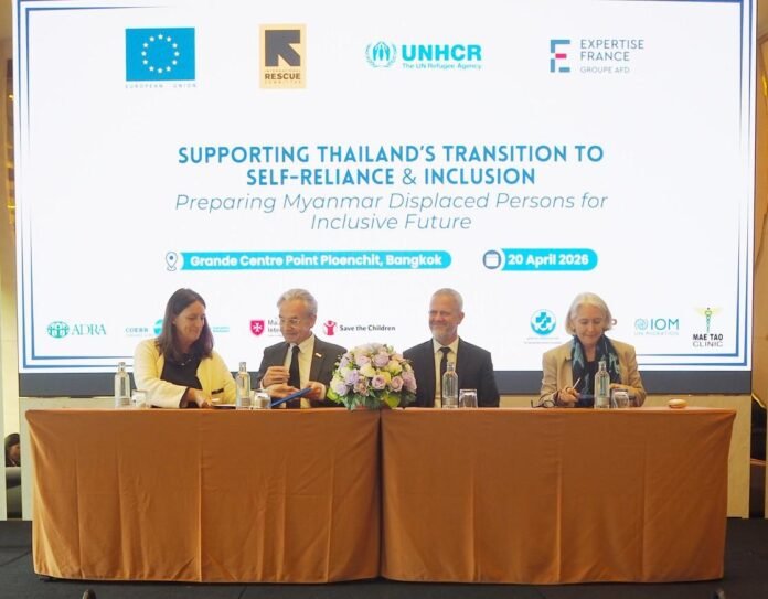 မြန်မာဒုက္ခသည်တွေကို အကူအညီပေးမယ့် အစီအစဥ်မှာ ထိုင်းနိုင်ငံဆိုင်ရာ ဥရောပသမဂ္ဂသံအမတ်ကြီး မစ္စစ် လူဝီဆာ ရာဂါ နဲ့ UNHCR၊ အပြည်ပြည်ဆိုင်ရာ ကယ်ဆယ်ရေးကော်မတီ မဟာမိတ်အဖွဲ့နဲ့ Expertise France ကိုယ်စားလှယ်တို့က သဘောတူညီချက်အသစ်ကို လက်မှတ်ရေးထိုးခဲ့တာဖြစ်ပါတယ်။