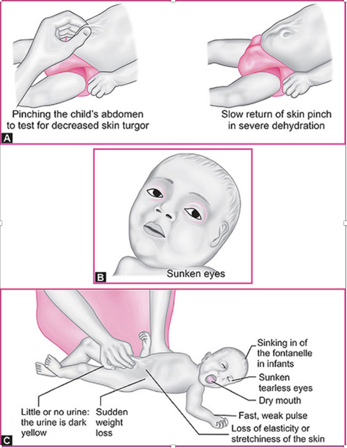 – ကလေးငယ်၏ အရေပြားကို ဆွဲမကြည့် ရာတွင် အချိန် အနည်းငယ်ကြာမှ နဂိုနေရာ ပြန်ရောက် ခြင်း